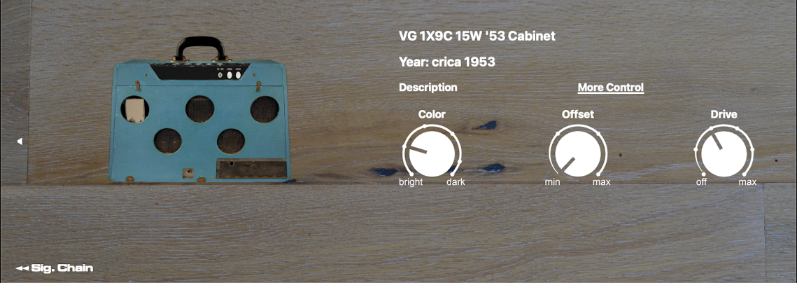 It’s that sound, right before untimely end, that we sought out with our new feature Cabinet Drive. Made available on specific low power speaker models, Cabinet Drive allows individual cabinets to be over-driven akin to being pushed by an amplifier that is too powerful. The effect can be dialed in to simulate subtle peak voltage effects that often happened with mismatched power specifications between peak and root mean square (RMS), or the more extreme effects of sonic destruction. Note: when Cabinet Drive is engaged, the global Master Volume control becomes interactive and can also be used to control drive level.