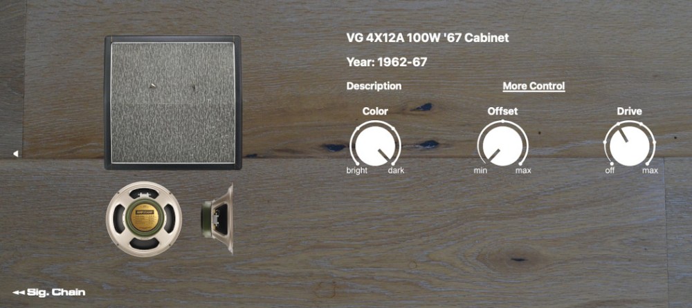 The sound finishes with the VG402C Amplifier, configured for ’69 topology, and the VG 4x12A 100W ’67 Cabinet for period correct tone. We think you’re going to really love jamming on this sound, we’ve found the combination of fuzz and phase shifting to be extremely inspirational, for both clean and heavily distorted tones. It’s no wonder that one of the most memorable live performances was created from this sound. Now it’s your turn.
