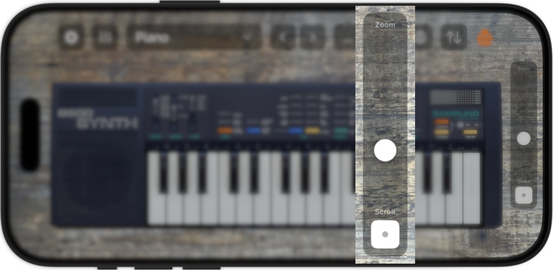 On mobile devices with smaller displays, use the zoom control to focus on controls and/or the keyboard. Drag and scroll to patch with two thumbs, similar to video game mechanics.