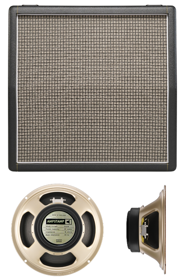 A bottom 4×12 closed back cabinet featuring classic 25W, 16 ohm speakers with black magnet covers and original lead 75Hz resonance cones. Speaker frames date production on September 19th and 21st, 1978.